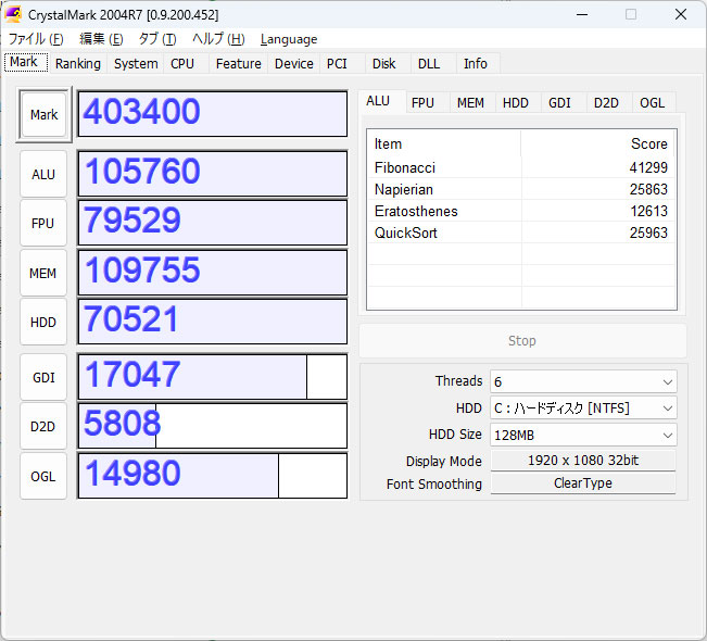 | CrystalMark | 308949 | 403400 | 1.31倍 | |