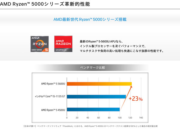 | CPU | AMD | AMD Ryzen 5 5600U (Zen 3) (2.3GHz/6コア/12スレッド/L3 16MB) |