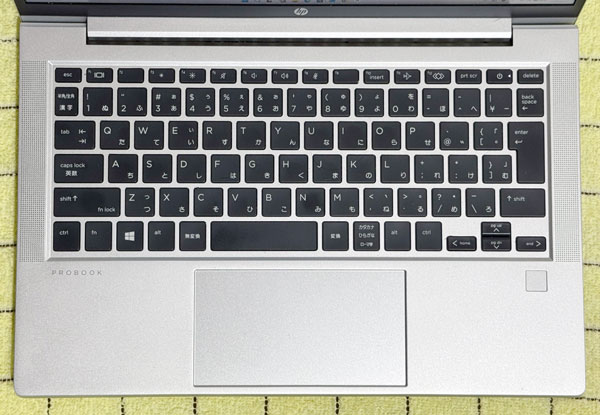 キーボードとチッタパネル。右側に指紋認証があります。